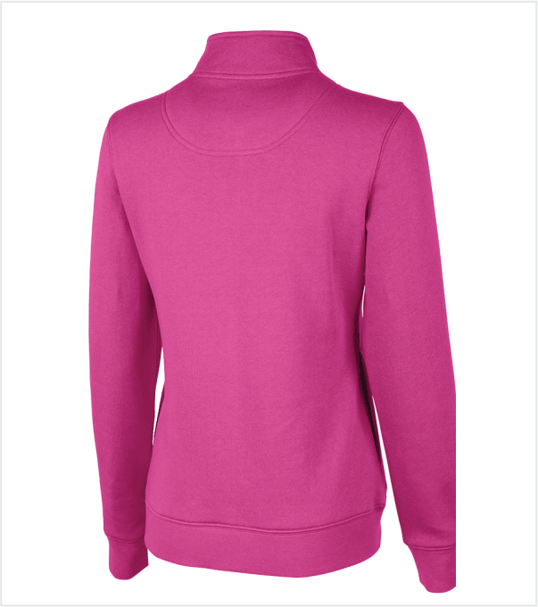 The Raspberry Pink Ladies' Charles River Crosswind quarter-zip pullover is the ultimate Corporate/Casual Pullover. Made of 60% cotton/40% polyester ring-spun yarn sweatshirt knit with relaxed quarter zip sweatshirt styling, convenient on-seam pockets, dyed-to-match rib knit trim design details on neckline, hem & cuff, and a durable antique nickel-finished metal zipper. The allover double needle stitching adds durability with extremely comfortable and soft ring-spun cotton yarn. Fantastic for the Ladies with a flattering fit!