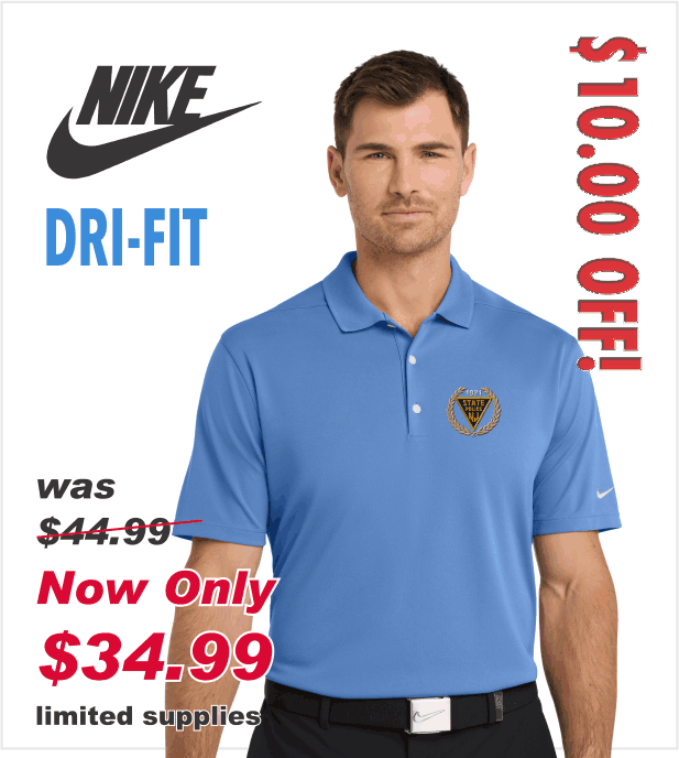 NIKE Valor Blue DRI-FIT Polo with Embroidered Wreath Logo
