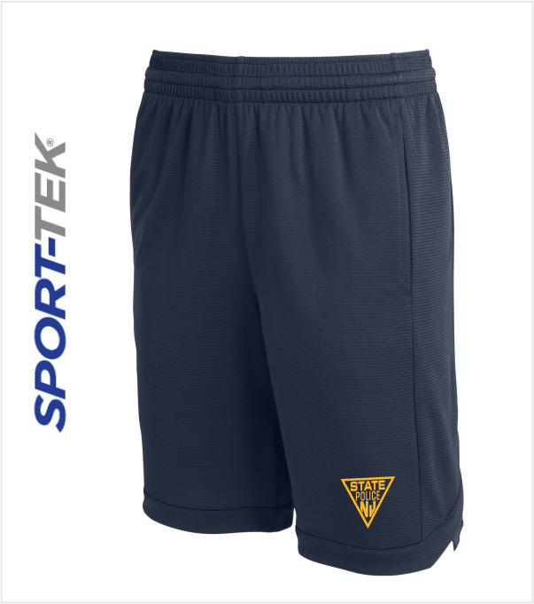 SPORT-TEK Closed-Hole 100% Polyester Mesh with Side Pockets. This short is tailored for today’s athlete with elastic waistband, secured self-fabric drawcord, removable tag for comfort and a 9-inch inseam. Side pockets integrate into side panels with overlap notch details. Printed with the Iconic Triangle on the left thigh in Gold.